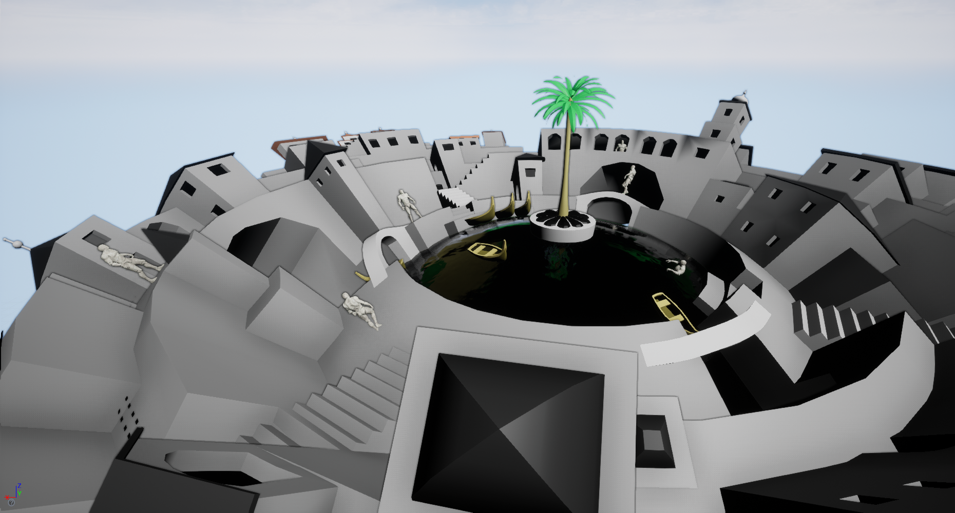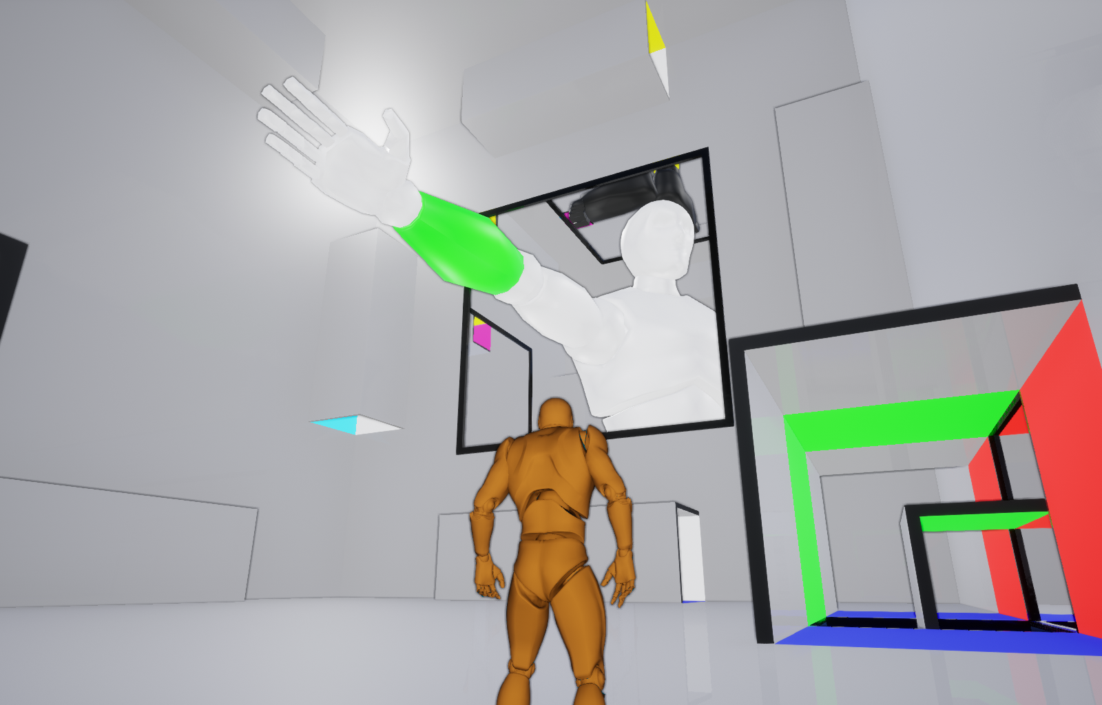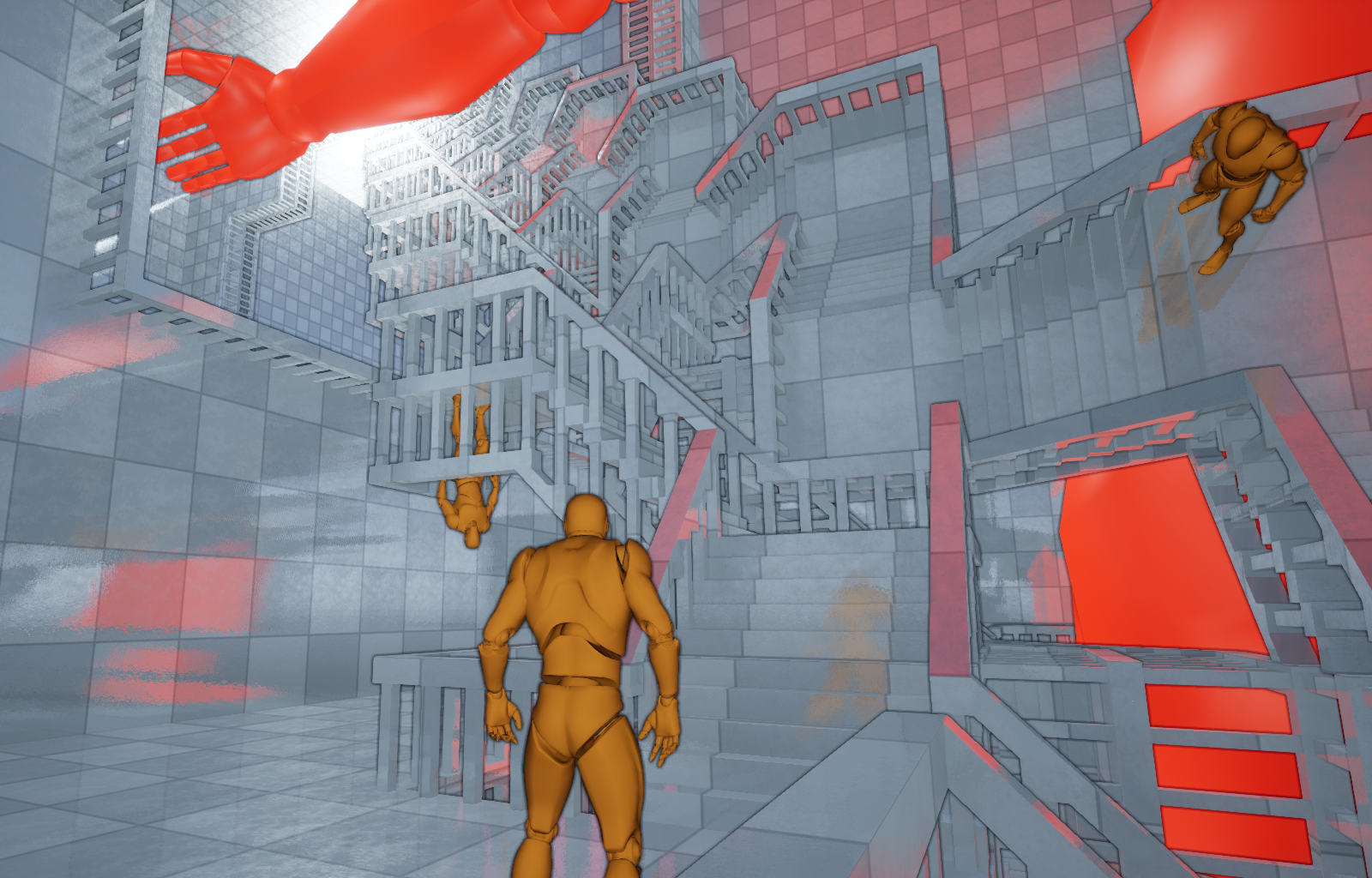 Last but not least, I am working on a "4D minigame" where you can explore strange worlds with counterintuitive gravity and topology. Essentially "Escherade" is going to be a tribute to M. C. Escher that lets you view all of Escher's works while walking on walls and ceilings, along with a fully immersive exploration of Tetrahedral Planetoid, Double Planetoid, Relativity, House of Stairs, etc.