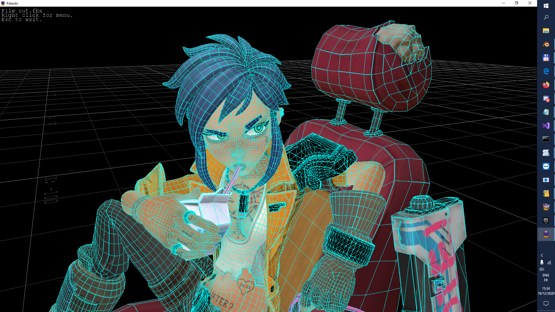 Recently I have focused on the FBX interchange format, and designed some conversion tools intended for general use. One is a Mixamo-to-UE4 converter, which makes Mixamo's animations directly available for Unreal Engine's Mannequin. Another (work in progress) is a SketchFab converter that can generate an FBX from online-viewable OSGJS (OpenSceneGraph/json) scenes.